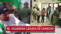 Simpatizantes esperan con banderas al gobernador cruceño en el aeropuerto de Viru Viru