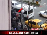 Yeni yılın ilk saatlerinde aynı araçta ilerleyen bir grup, yol ortasında durdurdukları otomobilden inerek kavga etmeye başladı. Tekme ve tokadın havada uçuştuğu olay kameralara yansıdı.