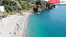 Hava sıcaklığının 15 deniz sıcaklığının ise 21 derece olarak ölçüldüğü Antalya'da vatandaşlar, denizden çıkmıyor.