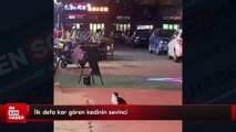 İlk defa kar ile tanışan ev kedisi sahibi ile yürüyüşe çıktı ancak şaşkınlık ve heyecan duyan sevimli kedi bir anda sahibinin montuna girdi. İşte güldüren o anlar...
