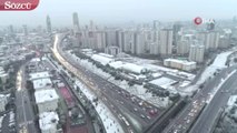 İstanbul’u kaplayan beyaz örtü havadan görüntülendi
