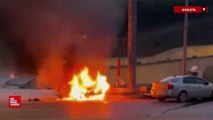 Sakarya'nın Karasu ilçesinde devrilip, alev alan otomobilde sıkışan sürücü İrfan Aşık, yoldan geçen TIR şoförü Orhan Parlak tarafından kurtarıldı. O anlar kameraya yansırken, alevler itfaiye ekiplerince söndürüldü.