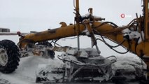 Kar yağışı nedeniyle köy yolları ulaşıma kapandı, yol açma çalışması yapan iş makineleri de yolda kaldı
