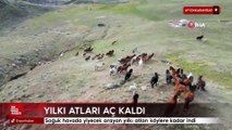 Karla kaplı yaylada yiyecek bulamayan yılkı atları için ekipler devrede