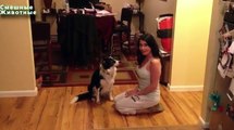 Perros de abrazo con los propietarios. perro divertido