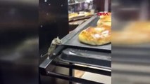 DÜZCE'de bir fırında çalışan tezgahtar kadın, pişmeye gidecek olan kurabiyelerin bulunduğu tepsilerin takılı olduğu rafların üzerinde çizmeleriyle dolaştı. Tezgahtar o anları ise sosyal medya hesabında paylaştı.