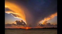 Superbe tornade devant un coucher de soleil aux Etats Unis