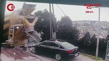 Beşiktaş'ta, sokağa giren beton mikserinin çarptığı iki telefon hattı direği devrilirken bir aydınlatma direği de yan yattı. Direğin devrilme anı, güvenlik kamerasına yansıdı.