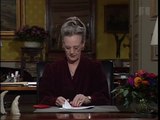 Det er en gave at leve i et demokratisk land, hvor alle kan komme til orde. Dronningen roser også Danmarks indsats i internationalt hjælpearbejde og de rød-hvide fodboldfans, som fester i stedet for at slås. Men det er ikke kun hygge, som florerer. Desværre findes der også voldelig fremfærd og råhed. Regenten opfordrer til, at danskerne passer på hinanden, og hun takker for, at dronning Ingrid blev fejret for 50 års gerning i Danmark.