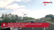 Bir anda otoyola inen uçak anbean kamerada