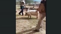 Granjero casi se degüella mientras intentaba matar a un cerdo