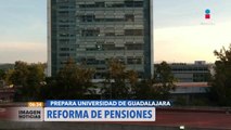 Ante las inconformidades manifestadas por trabajadores de la Universidad de Guadalajara con respecto a la reforma al sistema de pensiones, el Rector General, Ricardo Villanueva Lomelí aseguró que los pensionados, jubilados y trabajadores no verán afectados sus ingresos y no aportarán ni un peso más con dicha reforma.