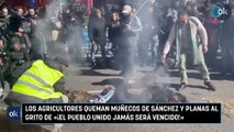 Vean como los agricultores queman muñecos con las caras de Sánchez y Luis Planas