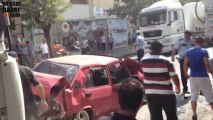 İzmir'in Bayraklı ilçesinde çarpıştığı iki tırın arasında kalan otomobilin sürücüsü, hayatını kaybetti.