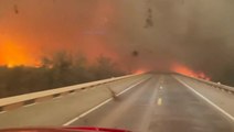 Fire engine drives through raging inferno as wildfire spreads in Texas Panhandle