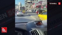 Trafikten kaçmak için kaldırımda giden taksici yayaya korna çaldı
