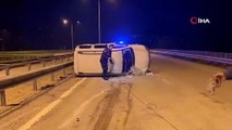 Bursa'nın İnegöl ilçesi Oylat Köprülü Kavşağı'nda meydana gelen kazada takla atan hafif ticari araç 50 metre sürüklendi.