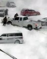 These residents witnessed a snowplow struggling to make way outside their house in Nova Scotia, Canada. The snowplow couldn't get through the thick blanket of snow that was left over by a blizzard. Another one came to help it out, but to no avail.