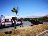 REFÜJE ÇARPIP TAKLA ATAN OTOMOBİLİN SÜRÜCÜSÜ YARALANDI
