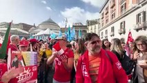 Napoli, lavoratori di Cgil e Uil manifestano in piazza Plebiscito per lo sciopero
