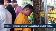 LAMPUNG, KOMPAS.TV - Pria yang diduga anak seorang kepala kampung babak belur dihajar warga karena kepergok mencuri sepeda motor.