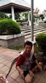 Cette femme fait un câlin à un énorme lézard dans la rue !