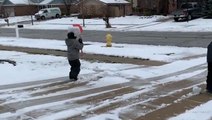 This young man in Cottage Grove, Minnesota, decided to make the most of his time out shoveling snow by dancing along the driveway on March 25. If you must clear snow, might as well have some fun.