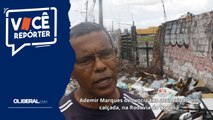Moradora Mara Rodrigues denuncia acúmulo de lixo na rua do Canal do Galo