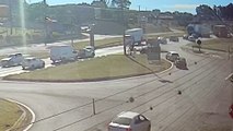 Câmera registra acidente entre carro e moto no Trevo da Portal