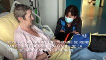 La chienne Laponie rend visite aux patients de l'unite de soins palliatifs de la clinique Saint-Laurent, à Rennes