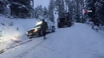 Yüksek kesimlerde kar yağdı, mahsur kalan araç böyle kurtarıldı