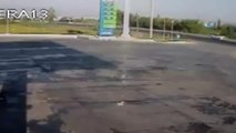 Motosiklet Sürücüsünün Havaya Uçtuğu Anlar Kamerada