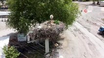 Konya’nın Beyşehir İlçesine bağlı Yeşildağ Mahallesinin simgesi haline gelen leylekler, ağaçlar üzerindeki yuvalarında yumurta nöbeti tutuyor.