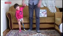 Kocaeli'nin Başiskele ilçesinde doğuştan sol bacağı gelişmediği için ampute edilen 3 yaşındaki Umut, protez bacakla yürümeye başladı.