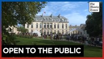 France's Macron shakes hands with China's Xi at Elysee Palace