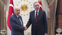 Cumhurbaşkanı Erdoğan, MHP Genel Başkanı Bahçeli'yi Beştepe'de kabul etti. Erdoğan ile Bahçeli 31 Mart yerel seçimlerinin ardından 29 Nisan'da bir araya gelmişlerdi.