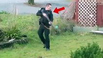 Amusing video shows the officers trying to corner the goat - with one even appearing to fall over.