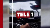 Yolculuk yaparken çektiği görüntüde TIR’ın kendilerine çarptığı kazayı kaydetti