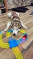 A person was watching their husky relax under an open tap to beat the heat on a hot day. They were spotted taking a shower and getting drenched with the tap water. When their owner called them, they comically ignored them.