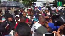 Precandidato presidencial lanza dinero a jóvenes frente al Congreso Nacional