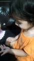 Cute Trishu putting mehndi in hand with black color