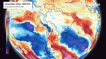Anomalia de temperatura em 850 hPa realça as massas de ar sobre o Brasil