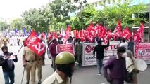 Agricultores indios que protestaron contra Narendra Modi, una población clave en los comicios