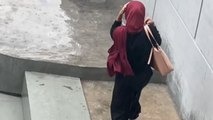 Girl rushing home in the rain gets saved by an umbrella blown by the wind
