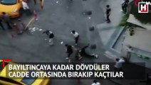Beyoğlu'nda eğlence mekanı çıkışı tekme tokat kavga kamerada