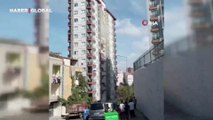 Esenler'de 16 katlı binanın dış cephesi çöktü! Yoldan geçenler son anda kurtuldu!