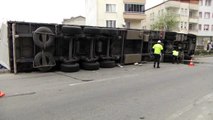 Sebze ve Meyve Yüklü Tır Devrildi