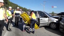 Otomobil önce tır'a ardından bariyerlere çarptı 2 yaralı