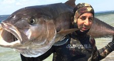 2 Metre Boyundaki 68 Kiloluk Akya Balığını Zıpkınla Avladı