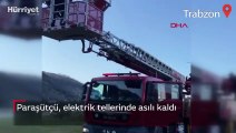 Paraşütçü, elektrik tellerinde asılı kaldı
